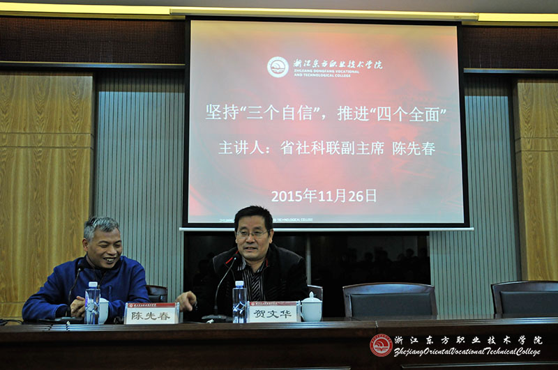 贺文华在报告会总结时指出,陈副主席的报告思想深刻、内容丰富、深入浅出、通俗易懂,理论有深度,认识有高度,是最好的中国特色社会主义理论教育,使师生们受益匪浅。他对陈先春副主席的莅临指导和一直以来对学院的关注支持表示热烈欢迎和衷心感谢。(社科基础部)