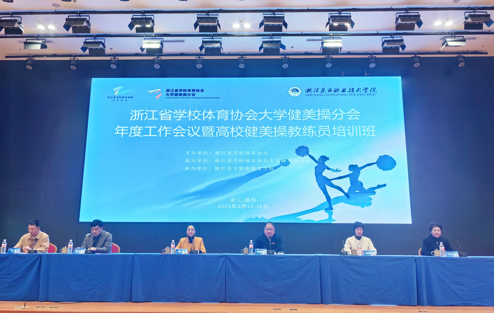 2025年3月13—16日,浙江省学校体育协会大学健美操分会2025年度工作会议暨高校健美操教练员培训班在我校顺利举行。浙江省学校体育协会大学健美操分会副主席滕青、郭大勇、沈国琴,浙江省学校体育协会大学健美操分会秘书长任勇,我校党委委员、纪委书记、体委主任郑铁豪,体育部主任孙永梅等出席会议,全省各高校健美操教练员160余人参会。